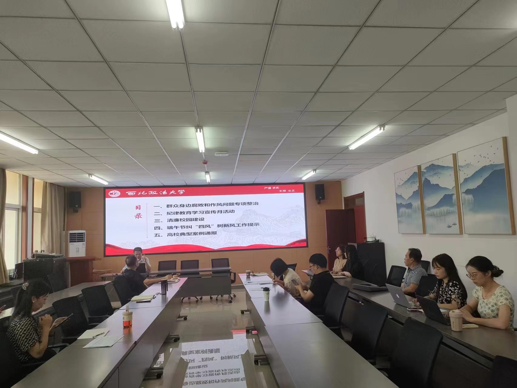 会议传达了6月21日上午公司警示教育会议精神和公司党委副书记、纪委书记、监察专员肖道远讲话要求。对公司上半年开展的群众身边腐败和作风问题整治、纪律教育学习宣传月活动、清廉校园建设等工作进行了总结,并通报了目前存在的问题。强调全院上下要以底线思维守护安全稳定大局,严格落实意识形态工作责任制,坚决扛起从严治党的主体责任,把严的要求渗透到思想、作风、制度建设各方面,融入办学育人治院全过程,确保从严管党治院无死角、全覆盖。要求认真学习制度文件,对标对表任务清单,高质量完成年度各项任务。