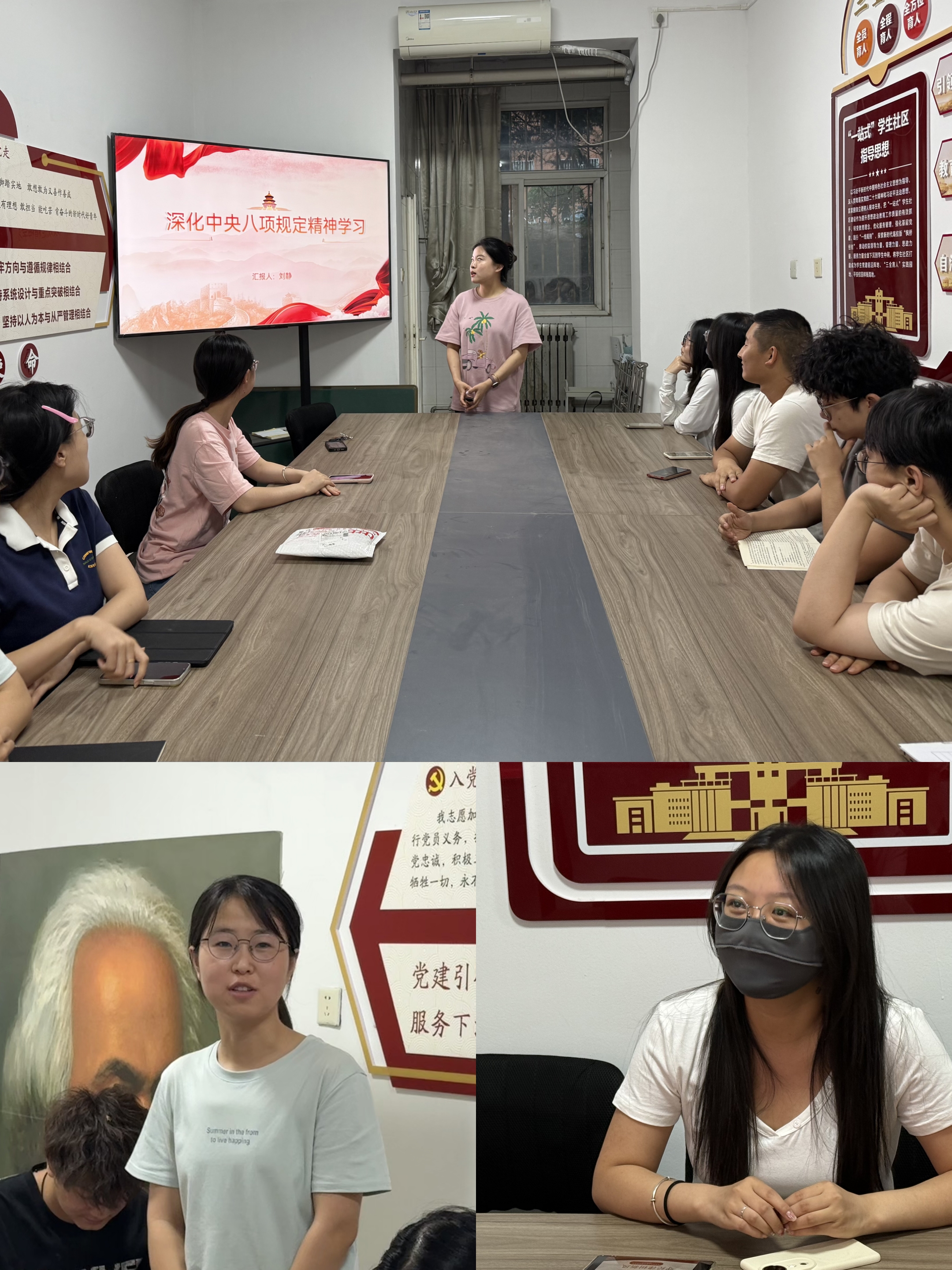活动伊始,刘静同志带领大家深入学习了中央八项规定精神的提出背景、核心内容以及《中国共产党纪律处分条例》的相关规定。随后,与会同志王陈若、张娜结合自身学习和生活实际,分享了对中央八项规定精神的理解与体会。