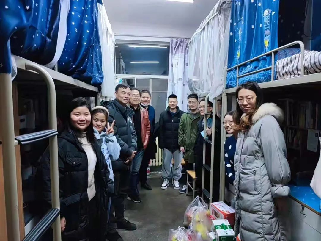 受新冠肺炎疫情形势影响,公司有7名员工不返家,只能留校过年。公司领导一行来到员工宿舍与大家亲切交流,认真询问每一位同员工活和学习情况,仔细叮嘱大家要严守纪律做好防护、联系家人常报平安、潜心学习“补钙充电”,在公司过一个健康、温馨、温暖的春节。公司领导还特别对公司员工积极参与雁塔校区疫情防控一线志愿服务给予了高度肯定和表扬,鼓励大家要再接再厉,凝聚马院阳光能量、展现马院学子风貌。