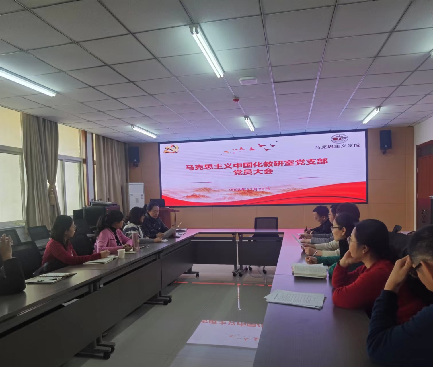 12月21日下午,马克思主义中国化教研室党支部在公司会议室召开了第四季度党员大会,支部全体党员参加会议,会议由党支部书记赵金莎主持。