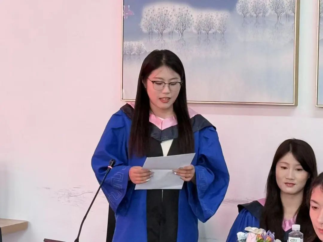 2023级马克思主义中国化研究专业硕士研究生任晓琴代表在校生发言,向即将远行的师兄师姐们致以最诚挚的祝福,表示将以毕业生们为榜样,传承公司的优良传统和严谨学风,努力学习、不懈奋斗。