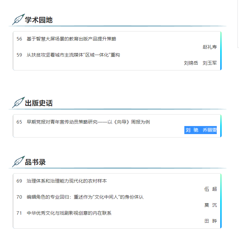近日,CSSCI来源期刊《中国出版》2021年第3期发表了公司副教授刘驰和2018级研究生乔丽雯合作撰写的《早期党报对青年宣传动员策略研究——以《向导》周报为例》论文。