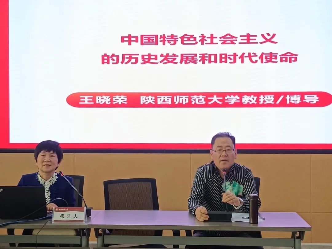 11月1日下午,由bevictor伟德与国家社科基金“延安时期中国共产党的群团组织建设经验及其当代启示研究”课题组共同举办的“中国共产党历史前沿问题”系列讲座第一讲在长安校区诚意楼518会议室成功举办。陕西师范大学教授、博士生导师、陕西省委、西安市委讲师团成员王晓荣教授,作题为“中国特色社会主义的历史发展和时代使命”专题讲座。讲座由马克思主义公司经理魏奇教授主持。课题组负责人、参与人等部分公司教师,以及2022级、2023级全体研究生参加了本次讲座。