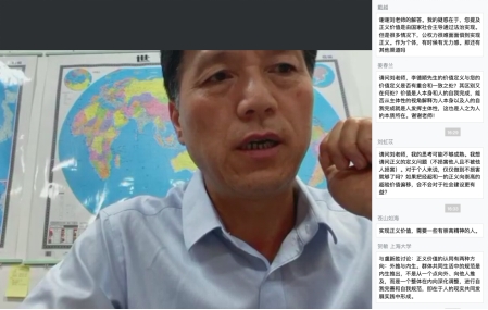 讲座分享阶段,刘进田教授从中国与世界范围内的价值和价值观的内涵导入,分三个纬度对该主题进行了详细解读。首先,围绕“价值是人本身和人的自我完成”这一命题,从当前社会几个流行的价值概念即“满足需要说”、“效应说”、“主体性说”等进行了对比和剖析,以《资本论》中“必然王国”与“自由王国”的论述为理论根据,对“什么是人本身?”、“什么是人的自我完成?”进行了分析和阐述,论证了“价值是人本身和人的自我完成”这一观点。其次,提出人理性对待欲望的三种态度(满足欲望、节制欲望、超越欲望)以及人的三大属性(自然属性、社会属性、精神属性)产生了三种价值,概括为幸福价值、正义价值和崇高价值,其中幸福价值为经验价值,崇高价值为超验价值,正义价值则为经验—超验价值合一。最后,刘进田教授对三大价值之间的关系进行了分析,认为在哲学意义上,幸福价值简称为“福”,崇高价值简称为“德”,两者呈对立关系,即康德提出的“德福二律背反”。而正义是把德和福连续起来的桥梁,通过分配关系及法律关系等途径,解决现实社会的非正义行径。由此得出,正义价值是解决“德福二律背反”的可靠途径。