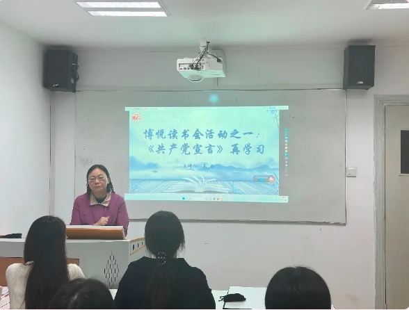 活动伊始,2023级思想政治教育专业研究生杨李唯一从阅读方法、阅读目的以及《共产党宣言》的写作背景、主要观点、现实意义等方面进行分享。她表明,经典永远不会过时,无数次读,就会有无数次新的思考和体会。交流互动环节,2023 级思想政治教育专业研究生李阳谈到,这部著作以其鲜明的阶级立场揭示了资本主义社会的内在矛盾,经过学习,她深刻理解了无产阶级在资本主义社会中的苦难和困境,以及他们推翻旧社会、建立新社会的历史使命。活动最后,同学们纷纷表示,通过此次读书会,对《共产党宣言》有了更加深入的理解,同时也更加坚定了对马克思主义的信仰。